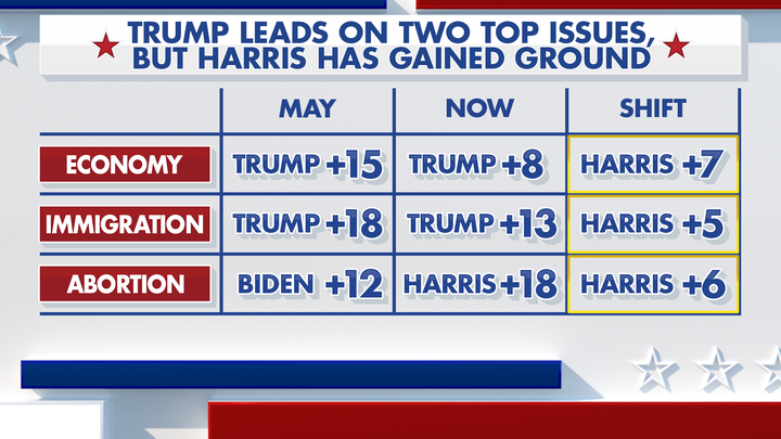 Voters prefer former President Trump on the economy and immigration, but Vice President Harris is making headway on these issues and more as the 2024 Presidential election looms